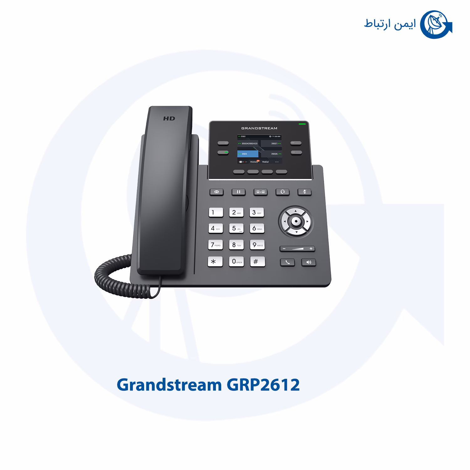 • گوشی تلفن گرنداستریم GRP2612P (معرفی گوشی های سری GRP گرنداستریم): تلفن IP قدرتمند برای نیازهای کارمندان دسک تاپ، دارای طراحی براق و مجموعه ای از ویژگی های نسل بعدی از جمله پشتیبانی WiFi و PoE، دارای 2 اکانت سیپ و 2 تماس همزمان، LCD رنگی TFT 2.4 اینچ (320×240)، کنفرانس 3طرفه، ویژگی های کلیدی شامل 16 کلید مجازی چند منظوره (VPK).
