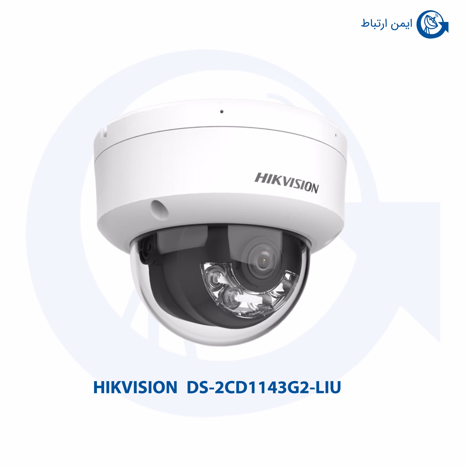 دوربین مداربسته هایک ویژن مدل DS-2CD1143G2-LIU از جدیدترین دوربین مداربسته برند هایک ویژن می باشد که از نوع دوربین های دام این برند با طراحی زیبا و بدنهای مقاوم است. این مدل به دلیل بهره مندی از فناوری ColorVu قادر است در محیط های کم نور نیز تصاویر را به صورت رنگی و شفاف ضبط کند. کیفیت تصویر 4 مگاپیکسل و پشتیبانی از فشرده سازی H.265+ باعث می شود تا تصاویر با جزئیات بالا و حجم ذخیره سازی کمتر ثبت شوند.