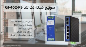 سوئیچ شبکه نت لند GI-402-PS یک سوئیچ صنعتی POE است. این سوئیچ دارای 4 پورت 10/100/1000 است که همگی POE اند، 2 پورت SFP دارد که UPLINK می باشند. جزو تجهیزات شبکه از جمله تجهیزات ظرفیت سوئیچینگ 12 گیگابیت بر ثانیه است. جدول MAC به آدرس 8K می باشد که توانایی پشتیبانی از 8 هزار کاربر را دارد. حداکثر توان 30 وات است. قدرت 15.4 وات می باشد، پورت PoE از تشخیص AF/ATIntelligent پشتیبانی می کند. توان اضافی 5 بیتی دوگانه دارد. سطح حفاظت IP40 است.