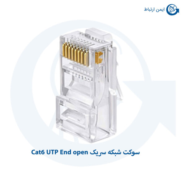 سوکت شبکه سریک Cat6 UTP End open در بازار با نام های سوکت شبکه ته باز یا سوکت شبکه جلو باز و یا سوکت شبکه میانگذر می شناسند. کانکتور شبکه پلاستیکی Cat6 UTP از استاندارد های طبقه سوکت ( Cat6 ) طراحی و تولید شده و شیلد و فویل ندارد. سوکت شبکه ته باز یا سوکت شبکه میان گذر (کانکتورRJ-45) در اتصال انواع شبکههای کابلی و تجهیزات مخابراتی به کار می رود. می شود توسط یک آچار شبکه، کابل شبکه با طول های متفاوت تولید کرد. از آنجایی که سیم ها از طریق کانکتور وارد می شوند و از طرف دیگر خارج می شوند، باعث تایید این توالی می شود. یکپارچگی و شفافیت سیگنال را با کاهش فاصله بین پیچش سیم و کنتاکت ها افزایش می دهد. 8p8c 2prong با روکش طلا باعث می شود که کنتاکت به هسته نزدیکتر شود و جریان داده پایدار باشد.