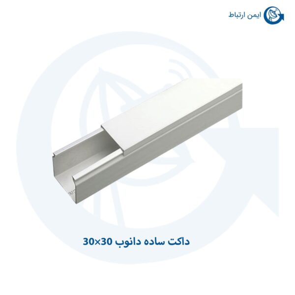 داکت ساده دانوب 30×30 داکت کانالی پلاستیکی است که دارای درب می باشد و به جهت محافظت و انتقال کابل ها از آن استفاده می گردد. از آنجایی که داکت ها معمولا ضد آب نیستند استفاده از داکت تنها در محل های مسقف صورت می گیرد. داکت های موجود در بازار انواع مختلفی دارند و نیز دارای کیفیت های متفاوتی می باشند. گفتنی است دسته بندی داکت ها معمولا بر مبنای اندازه های عرضی آنها می باشد.که در جهت کمک به جمع آوری و محافظت و مخفی کردن سیم ها و کابل ها به بازار عرضه شده است جزو تجهیزات شبکه است و اشتراکات زیادی با ترانک دارد. برای عبور سیم ها و کابل ها بسیار مناسب است.